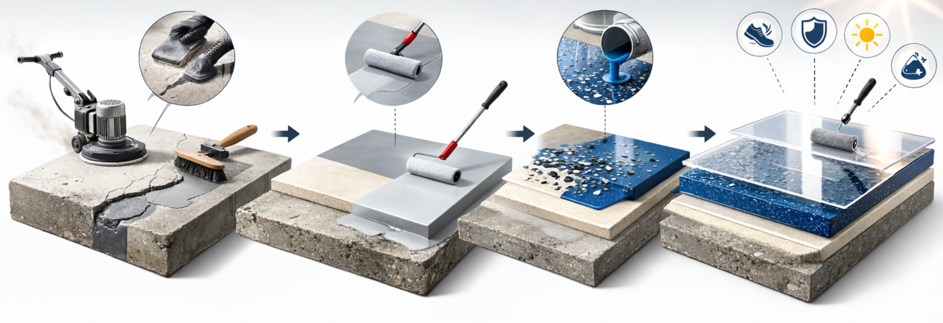 Industriāli izturīgas un estētiskas epoksīda sistēmas garāžām, noliktavām, darbnīcām un komerctelpām. Zemāk ir pārskatāmi veidi, slāņu uzbūve un izvēles principi — bez “teksta sienas”.